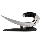 Classic Tom Anderson creations from the hit movie, The Chronicles of Riddick. Featuring 2, 12 1/2" stainless steel knives with 11" wrap around blades accented with saw teeth on the back edge. Includes table top stand to display together.